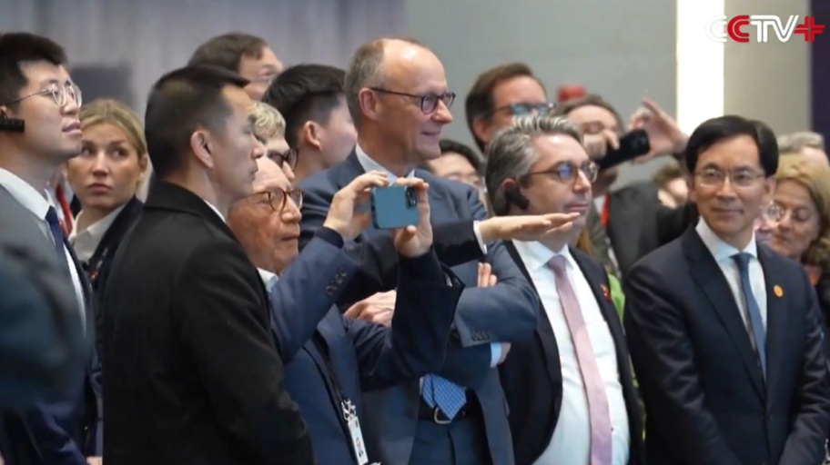 Ebbene, l’espressione del cancelliere Merz mentre li osserva dice tutto. Un sorriso forzato, un ghigno, volto contratto, sguardo fisso e braccia conserte. Dalla sua espressione sembra quasi che stesse pensando: “guarda questi cinesi dove sono arrivati mentre noi in Europa ci preoccupavamo di regolamentare la curvatura delle banane, di fare in modo che i tappi di plastica restassero ben attaccati alle bottiglie e rendevamo obbligatorie cannucce di carta che si incollano alle labbra prima che la bevanda sia finita”.