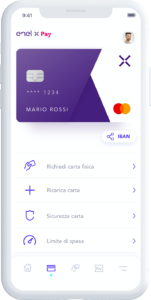 Scegliere Enel X Pay significa, come per gli altri prodotti e servizi del gruppo Enel, anche tendere la mano all’ambiente e a una crescita sostenibile: al conto online Enel X Pay, che si può gestire direttamente dalla app, è abbinata una carta digitale e fisica, realizzata in bioplastica, collegata al circuito Mastercard.