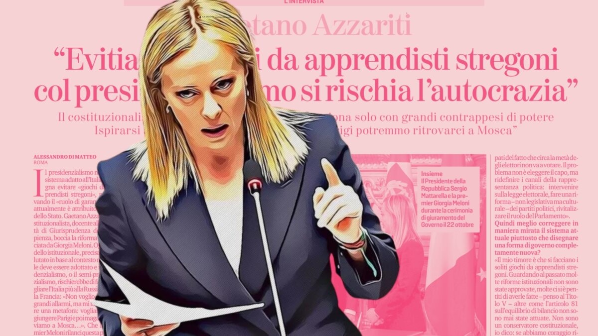 Chi scrive non è un costituzionalista, e soprattutto ringrazia di non esserlo mai diventato da allievo di Gaetano Azzariti, docente alla facoltà di Giurisprudenza della Sapienza (quel covo di libertà, per intenderci, che impedì a Ratzinger di tenere una lectio magistralis e a Capezzone di presentare un libro). Dicevamo: chi scrive non è un costituzionalista, però oggi l’intervista dell’illustrissimo professorissimo sul progetto di presidenzialismo del governo Meloni è qualcosa di inimitabile. In senso negativo, ovviamente.
