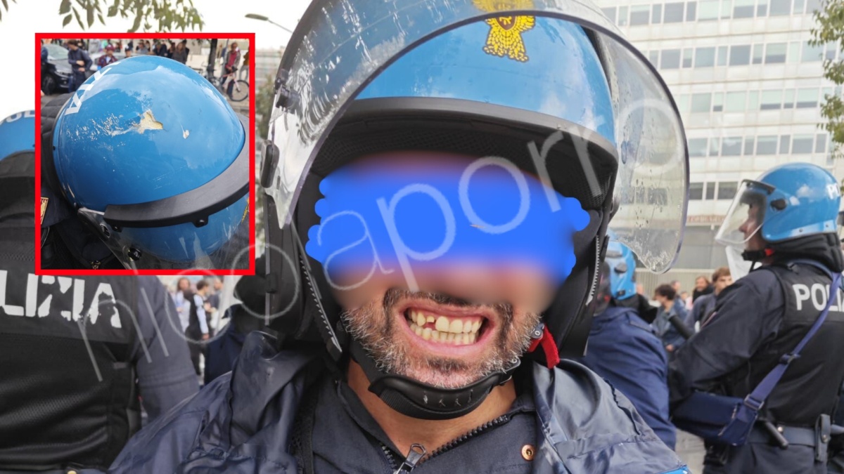 Le foto parlano chiaro. Due in particolare: nella prima si vede un poliziotto con un dente fracassato dall’odio Pro Pal; nella seconda il casco spaccato da un sasso, casco che ha probabilmente salvato la vita all’operatore. “Questi criminali saranno identificati e devono essere puniti severamente senza che gli si consenta di partecipare più a manifestazioni – conclude Mazzetti – Così come è ugualmente indispensabile che chi vuole veramente sostenere solo le proprie idee pacificamente trovi il modo per tenere fuori questi delinquenti, rimanendo dalla parte giusta, e cioè dichiaratamente a fianco delle forze dell’ordine che saranno sempre presenti per garantire il loro diritto di esprimere le loro idee”.