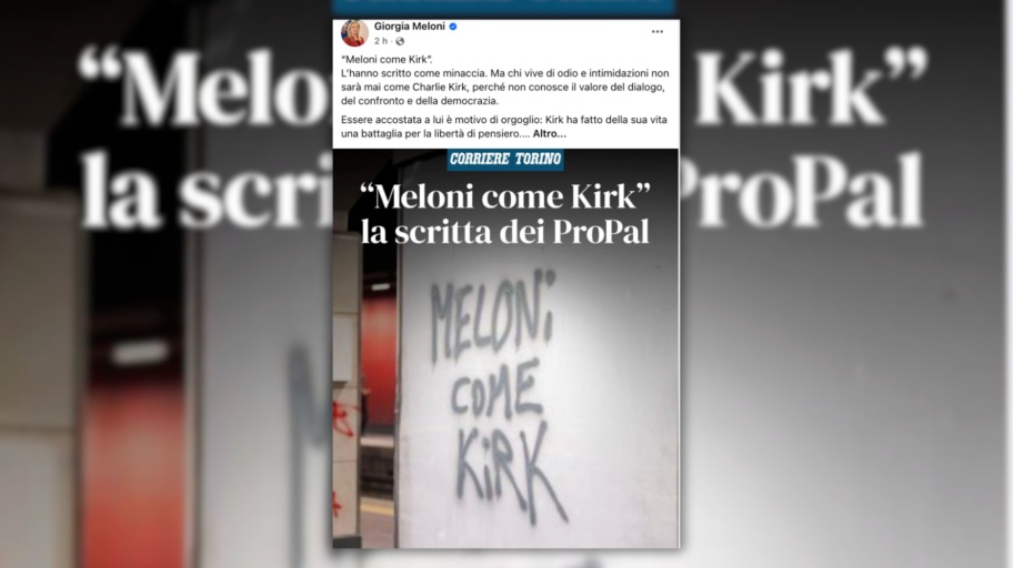““Meloni come Kirk”. L’hanno scritto come minaccia. Ma chi vive di odio e intimidazioni non sarà mai come Charlie Kirk, perché non conosce il valore del dialogo, del confronto e della democrazia – ha scritto Meloni sui social – Essere accostata a lui è motivo di orgoglio: Kirk ha fatto della sua vita una battaglia per la libertà di pensiero. Chi scrive minacce sui muri resterà sempre prigioniero della violenza. Noi continueremo a camminare liberi, forti delle nostre idee”.