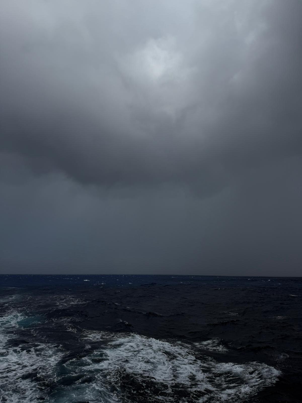 Attorno a noi, le stelle e la luna sono nascoste dalle nuvole. Non esistono più cielo e mare, solo un buio assoluto. È in momenti come questi che realizzi quanto siamo vulnerabili di fronte alla potenza della natura.
