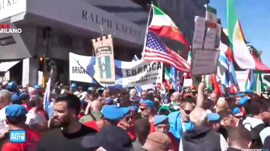 Nei video si sente anche qualcuno urlare contro la Brigata Ebraica: “Assassini”, “fuori dal corteo” e “Israele fascista stato terrorista”. Nello spezzone Pro Pal si vede sventolare anche una bandiera della Repubblica Islamica dell’Iran, quella guidata dagli Ayatollah. Per questo alcuni attivisti presenti nello spezzone della Brigata Ebraica, esuli iraniani, hanno urlato “Repubblica Islamica terrorista, fuori dal corteo”. Insieme alla Brigata ci sono anche esponenti ucraini.