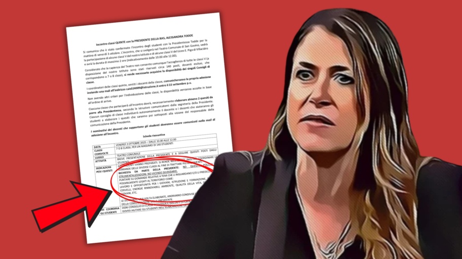 La notizia è di quelle succulente. Girava ieri sui social un documento interno dell’Istituto superiore Marconi-Lussu di Villacidro (in provincia di Cagliari) in cui si raccomandava che all’incontro che la presidente Todde farà il 3 ottobre con gli studenti, le domande non potranno né contenere “quesiti politici e strumentalizzazioni” né accenni alle “vicende giudiziarie”. E la cosa più grave che “le domande una volta elaborate dovranno essere condivise con il responsabile della comunicazione della presidente”.