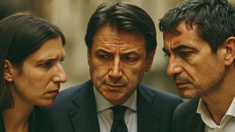 Elly Schlein, Giuseppe Conte e Nicola Fratoianni Immagine generata da AI tramite DALL·E di OpenAI