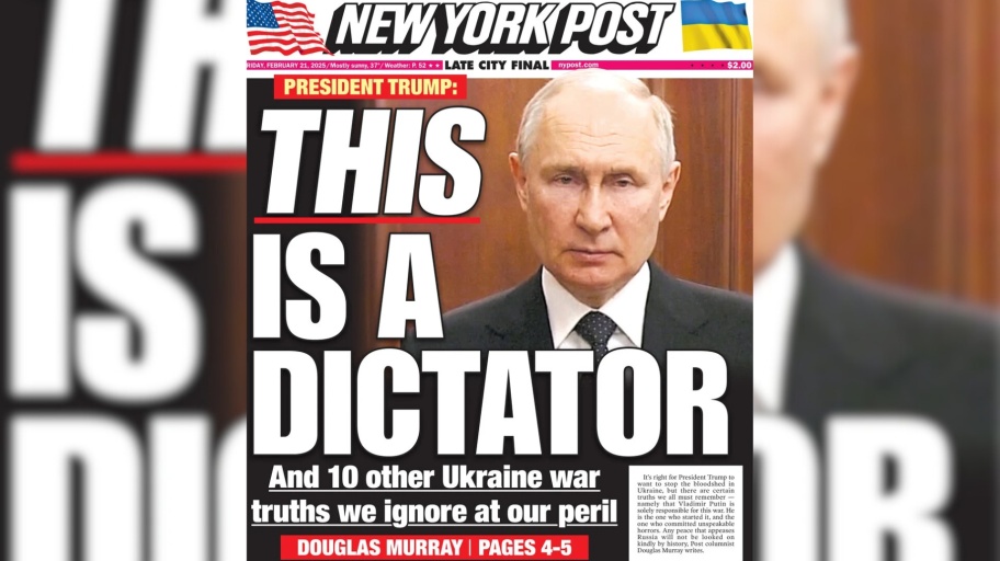 Pubblichiamo la traduzione dell’articolo comparso sul New York Post, giornale iper-trumpiano, scritto da Douglas Murray, un commentatore di cui tutto si può affermare tranne che sia un comunista. Anzi: è un conservatore, eppure sulla gestione della guerra in Ucraina, proprio come abbiamo più volte fatto in questa Zuppa, dà una bacchettata al presidente Trump sciorinando 10 verità che non si possono smentire. In prima pagina, il NYP ha pubblicato la fotografia di Vladimir Putin con scritto: “Questo è un dittatore”, criticando di fatto le accuse di The Donald a Volodymyr Zelensky.