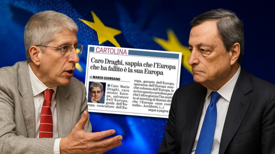 Mario Giordano non perdona. Non perdona a Mario Draghi il suo intervento, applauditissimo, al Meeting di Rimini. Ma non tanto per il contenuto delle sue parole, tutto sommato abbastanza condivisibili sull’irrilevanza dell’Europa, ma per il fatto che a pronunciarle non è un signor nessuno, uno che nell’Ue degli ultimi anni non ha contato una mazza. Ma dall’ex banchiere centrale europeo, nonché ex primo ministro di uno dei Paesi fondatori quindi consulente di Ursula von der Leyen. “Nel dicembre 2011 Politico.eu la definiva addirittura «la persona più potente d’Europa» – ricorda Giordano – Lei a Bruxelles ha sempre fatto il bello e il cattivo tempo, se avesse voluto avrebbe fatto nominare commissario Ue il suo cavallo (del resto ha fatto nominare Giggino Di Maio inviato speciale nel Golfo). Ancora lo scorso anno ci deliziava con il suo super rapporto, 400 pagine per spiegarci come si fa l’Europa, partendo da «una riflessione sugli strumenti a disposizione». E adesso ci viene a spiegare che è tutto inutile?”.