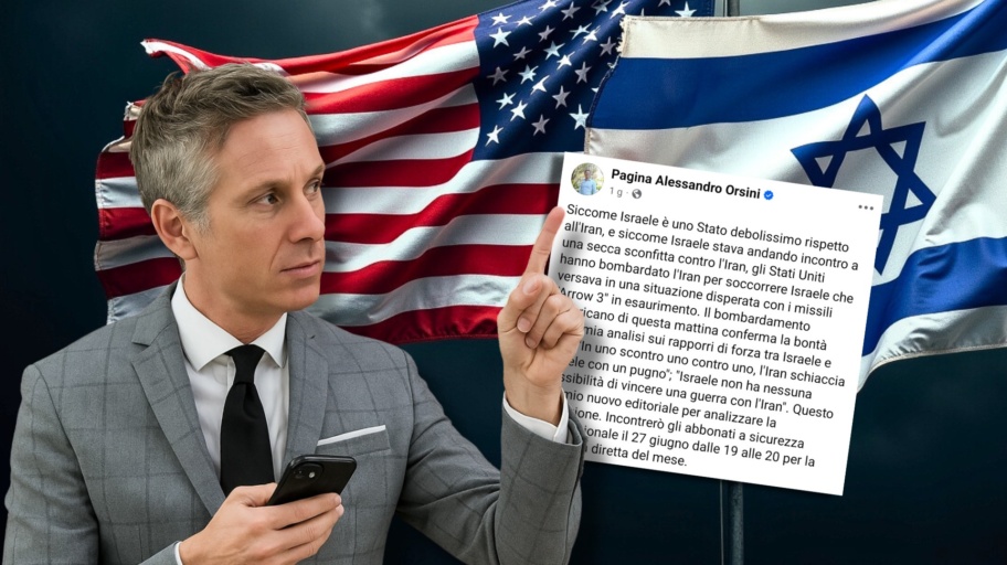 Infatti Orsini, dato che da tempo sostiene l’ardita tesi secondo cui in un confronto militare a due Israele verrebbe letteralmente schiacciato in un battibaleno delle forze armate iraniane, pare aver trovato un provvidenziale salvagente dialettico nell’inaspettato intervento dei colossali bombardieri statunitensi ordinato da Donald Trump. Queste le sue “illuminanti” parole postate su Facebook: “Siccome Israele è uno Stato debolissimo rispetto all’Iran, e siccome Israele stava andando incontro a una secca sconfitta contro l’Iran, gli Stati Uniti hanno bombardato l’Iran per soccorrere Israele che versava in una situazione disperata con i missili “Arrow 3″ in esaurimento. Il bombardamento americano di questa mattina conferma la bontà della mia analisi sui rapporti di forza tra Israele e Iran”.