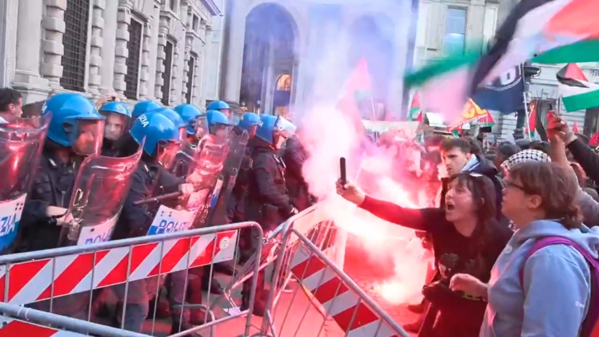All’esterno del Comune, nella piazza della Scala ribattezzata dai manifestanti “Piazza Gaza”, si sono radunate decine di attivisti contro il gemellaggio con Tel Aviv. Bandiere palestinesi, striscioni come “Milano anti-sionista” e “No gemellaggio” hanno dominato la scena. Durante la protesta, alcuni manifestanti hanno cercato di superare le transenne, scontrandosi con le forze dell’ordine in tenuta antisommossa. Gli agenti hanno respinto i tentativi anche utilizzando manganelli. La situazione è degenerata in tafferugli, con urla di protesta e cori contro la polizia. Dopo momenti di caos, la maggior parte dei manifestanti ha lasciato piazza della Scala per partire in corteo, intonando slogan come “Palestina libera”. Alcuni attivisti sono rimasti in piazza, continuando la protesta al grido di “Traditori, vigliacchi”.