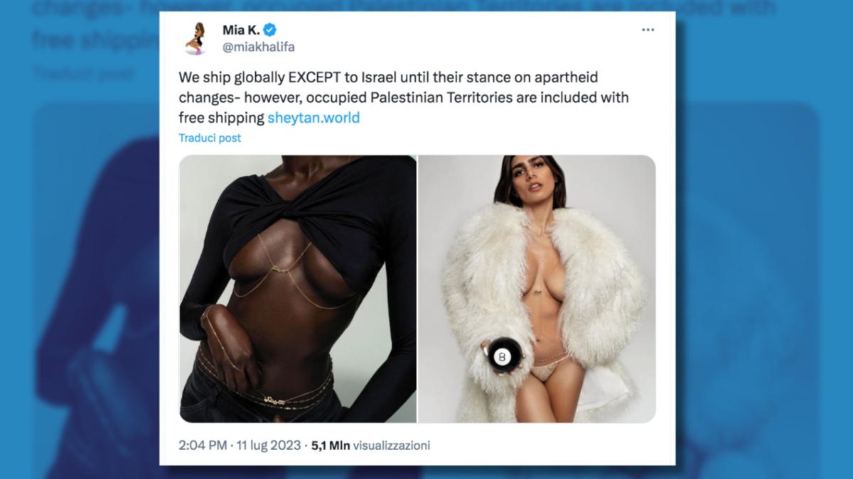 Attenzione, qui si parla di grandi manovre. C’è di mezzo un business colossale, le cui scelte potrebbero seriamente riscrivere il corso della ricchezza globale netta con ripercussioni sullo scenario geopolitico internazionale. Mia Khalifa annuncia, via social, che non distribuirà la sua merce in Israele “fino a che non porrà fine all’apartheid in Palestina”: privilegiati, invece, i mercati per l’appunto palestinese, iraniano, qatarino e comunque omogenei alla causa.