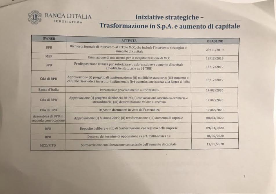 Due operazioni tattiche, come dice esplicitamente il regolatore. Una volta scavallato l’anno ci sarebbe stato più tempo per mettere con calma in sicurezza la Popolare, con un’operazione questa volta strategica, che prevedeva tra l’altro la trasformazione della popolare in spa. Entro l’11 maggio del 2020 e attraverso aumenti di capitale dedicati, gli stessi salvatori Mcc e Fondo, lo avrebbero sottoscritto per diventare azionisti stabili della banca pugliese. Alla fine il piano è saltato e la banca è stata commissariata. Con grande clamore mediatico: esattamente ciò che non volevano a Roma.