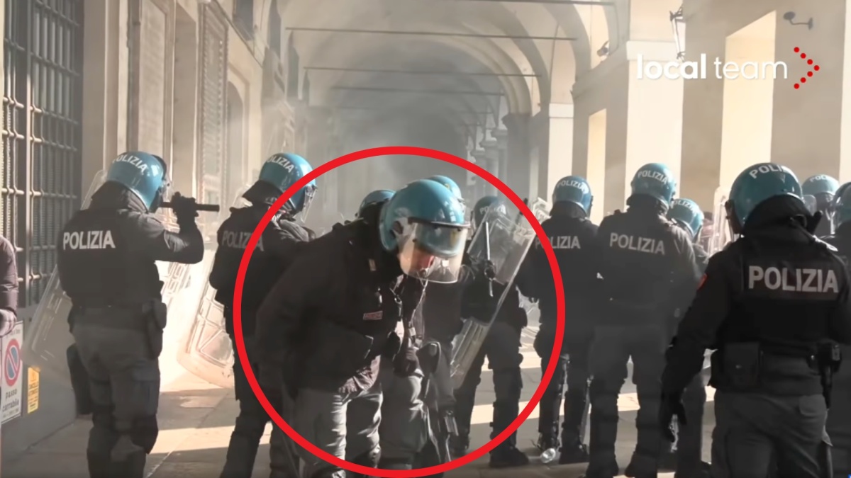 Concentriamoci su Torino, la piazza più calda. Una fonte di polizia ci fa sapere che sono 20, e non 15, gli agenti al pronto soccorso. Gli studenti nel loro manifestare hanno raggiunto il Museo del Cinema e sono entrati nella Mole Antonelliana, srotolando uno striscione con scritto “Le scuole sanno da che parte stare, contro il governo e genocidio”. Inoltre hanno fatto irruzione in due fast food, provocando ingenti danni. Gli scontri si sono svolti soprattutto in Piazza Castello. È qui che i facinorosi hanno lanciato, spiegano fonti di polizia a Nicolaporro.it, un ordigno artigianale collegato ad una bomboletta di spray al peperoncino. Un video (guarda qui sotto) mostra il momento dell’assalto che ha intossicato gli agenti. Alcuni dei manifestanti (nel corteo anche esponenti dei centri sociali e dell’Askatasuna), hanno mostrato il gesto delle tre dita a simboleggiare la pistola P38 tristemente nota durante gli anni di piombo. Diversi i volti dei politici italiani, di destra e di sinistra, esposti negli striscioni macchiati di sangue perché considerati “complici del genocidio” in Palestina.