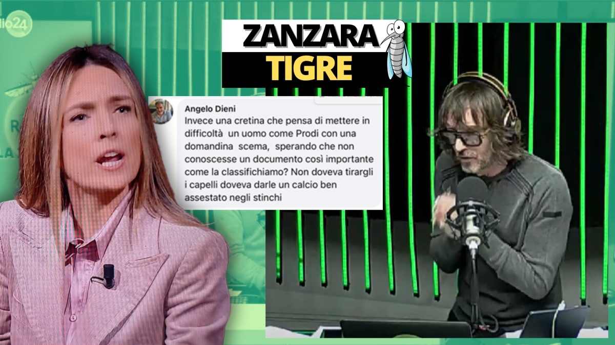 Cruciani non ha risparmiato critiche alla sinistra italiana sul caso del consigliere del Pd a Valsamoggia, Angelo Dieni, che ha insultato sui social la giornalista di Quarta Repubblica a cui Prodi aveva tirato i capelli: “La sinistra buonista, democratica, aperta, soprattutto non violenta… pensate se uno di Fratelli d’Italia o della Lega avesse detto: una cretina che voleva mettere in difficoltà Prodi con una domandina scema sperando che non conoscesse un documento così importante come la classifichiamo? Non doveva tirarle i capelli, doveva darle un calcio ben assestato negli stinchi”. Cruciani ha poi aggiunto: “E poi siete sempre qui a rompere i c*** se qualcuno pubblica la foto di Mussolini o il braccio testo. Questo dice che Prodi doveva tirarle un calcio negli stinchi ed è del Pd. Poi adesso ha cancellato tutto perché dicono cazz*** e poi se la fanno sotto”.