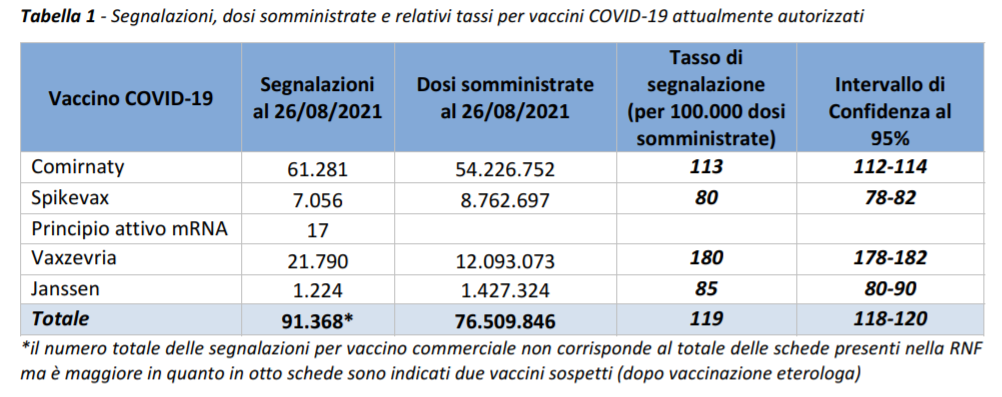 - per Pfizer un tasso di 113 à mentre il VAERS 203 casi per 100mila dosi;